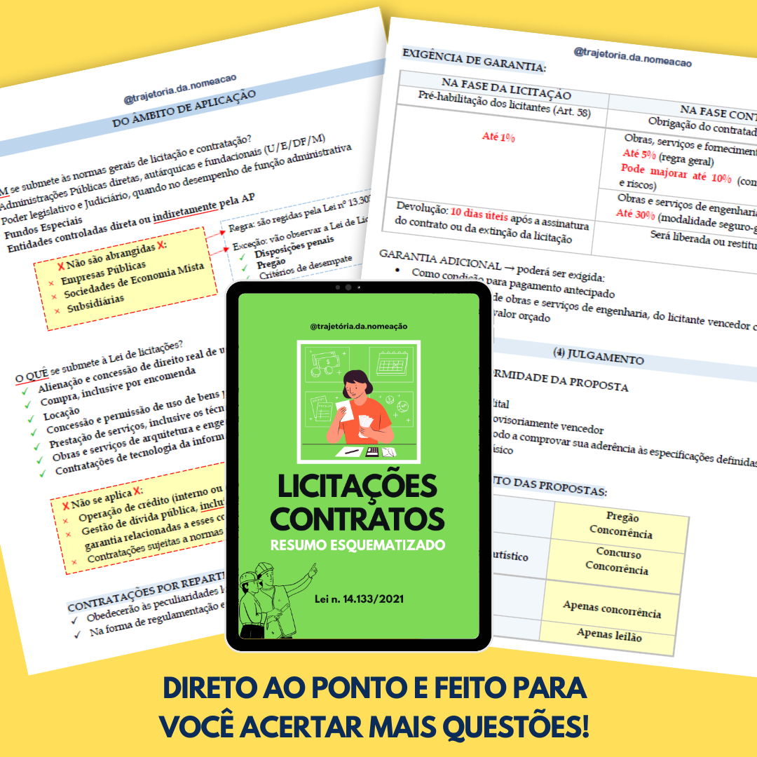 Licitações e contratos: 45 páginas. Importante destacar que todo o material é esquematizado, sendo a leitura muito mais eficiente e rápida.
